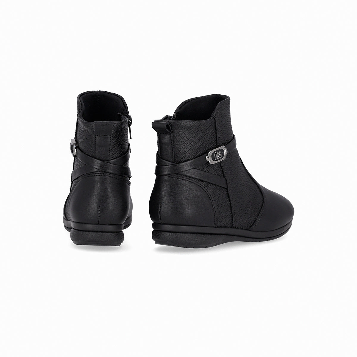 - Calzado: Botines al tobillo diseño atemporal con doble textura y hebilla lateral para mujer, colección Anabela.